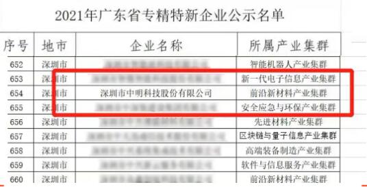 - 喜報-恭喜中明科技入選“2021年廣東省專精特新企業(yè)”