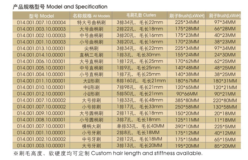 • 防靜電毛刷類型:牙刷型(橫柄)、油漆刷型(直柄)、U型(彎柄)等